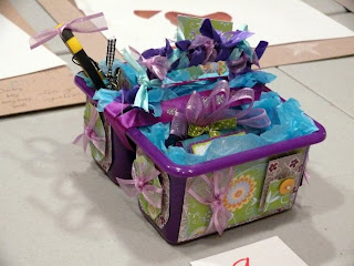Kay painted and stamped this cute pot (she is the Stickle Queen) that she filled with everything to pamper yourself including scrubbies, incense and such.